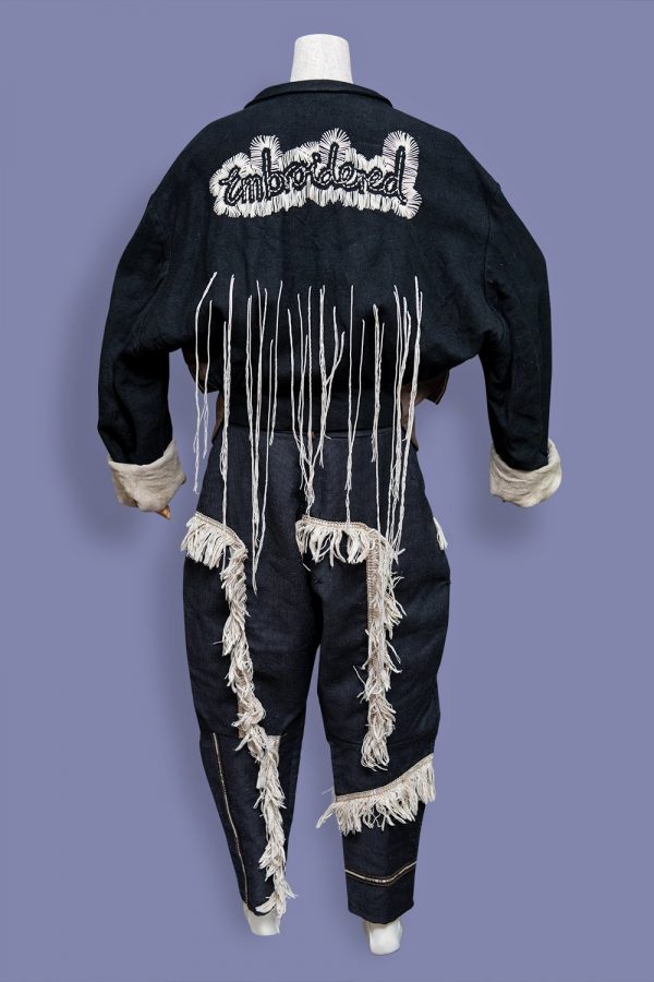 Christopher Nemeth “embroidered” jacket and fringe pants, 1980s or 1990s. Both are original vintage pieces, not the recent reissues.