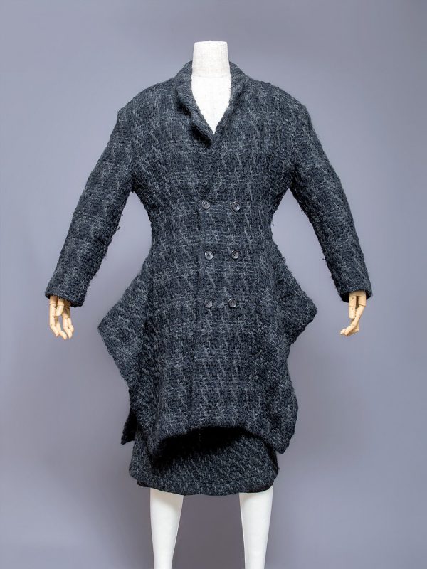Comme Des Garcons asymmetrical double breasted wool skirt suit, probably 1980s.