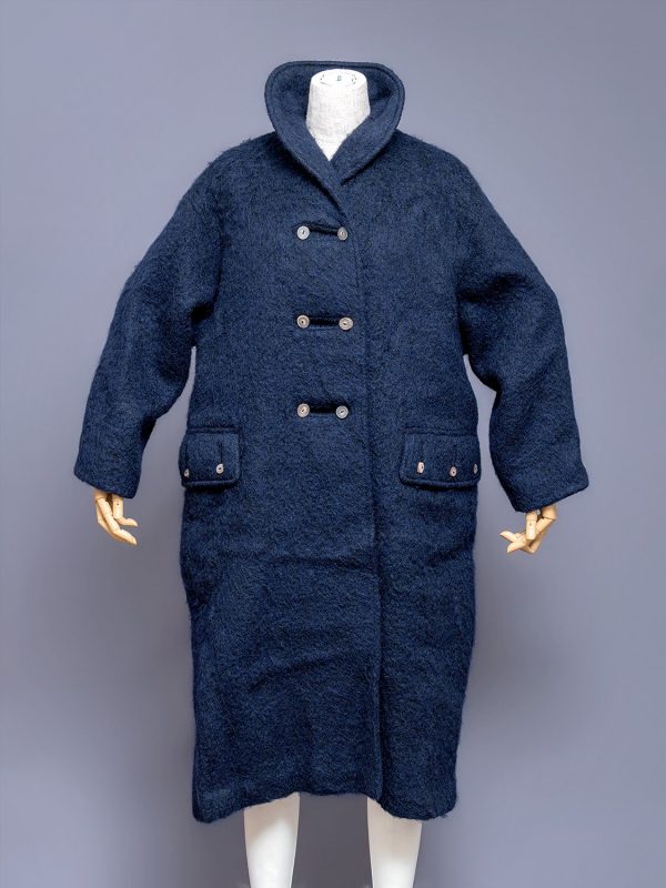 Comme Des Garcons dark blue double breasted coat with deer antler buttons, 1980s