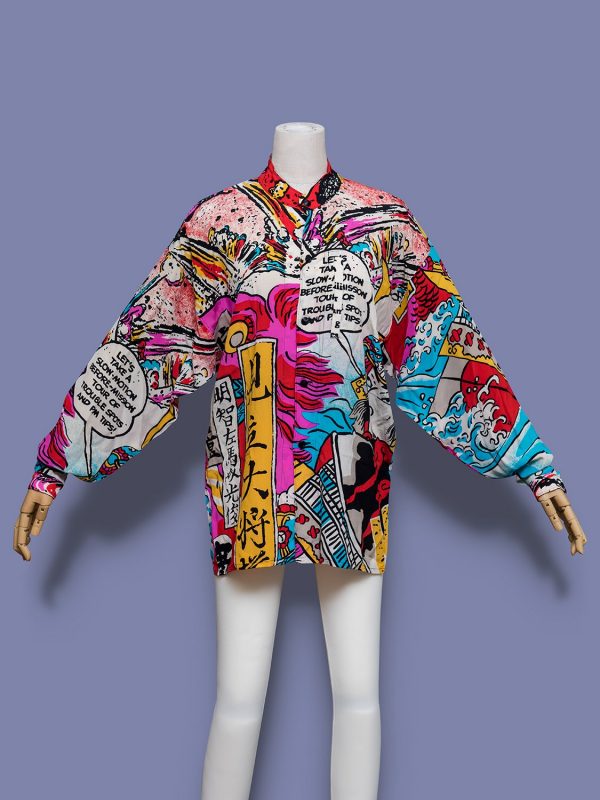 Kansai Yamamoto colorful comic print button-up shirt, 1980s.
